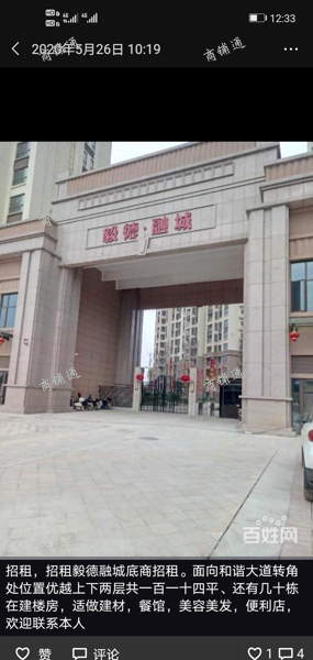 (出租) 毅德融城小区底商,面向和谐大道主路