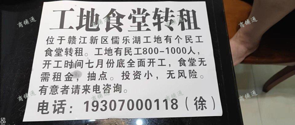 (转让) 工地食堂转租,无需租金,抽点。小,。