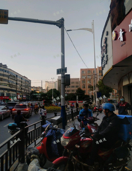 十字路口红绿灯,对面幸福电器,大型超市,隔壁披萨店,cc奶茶店